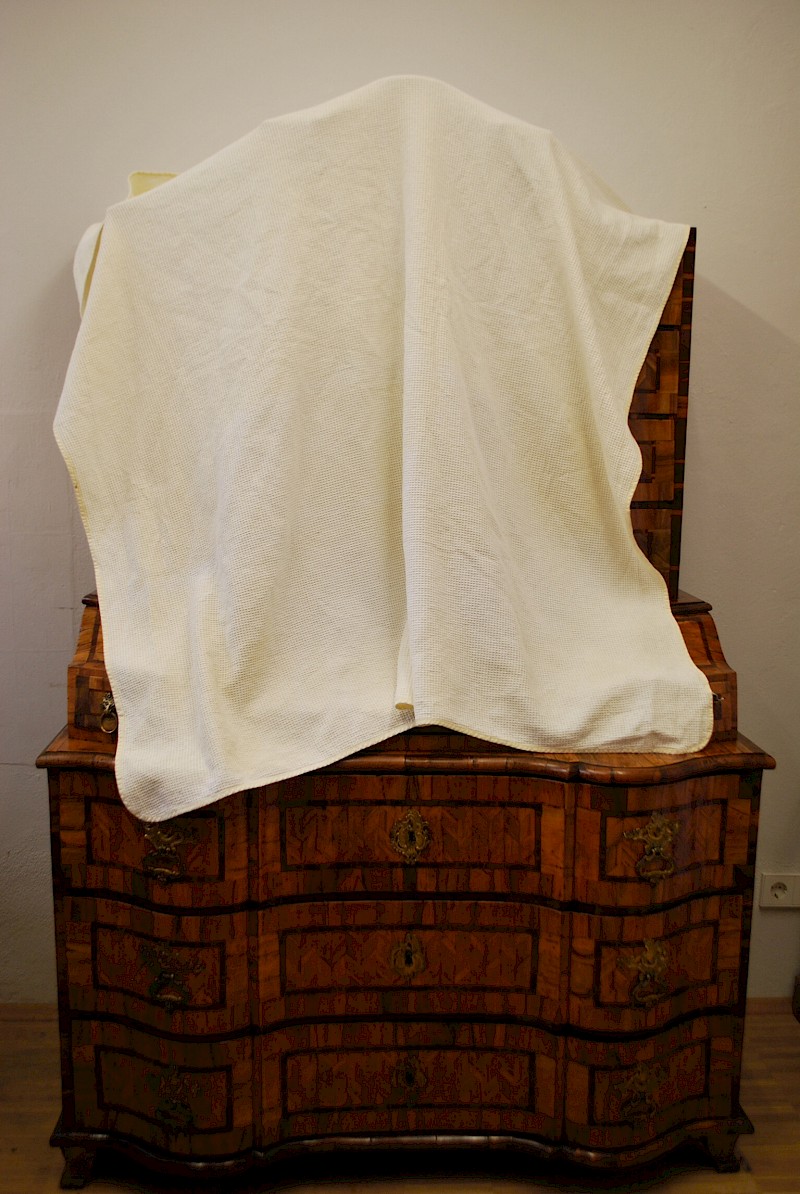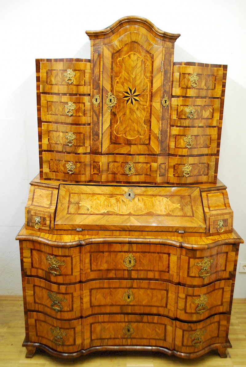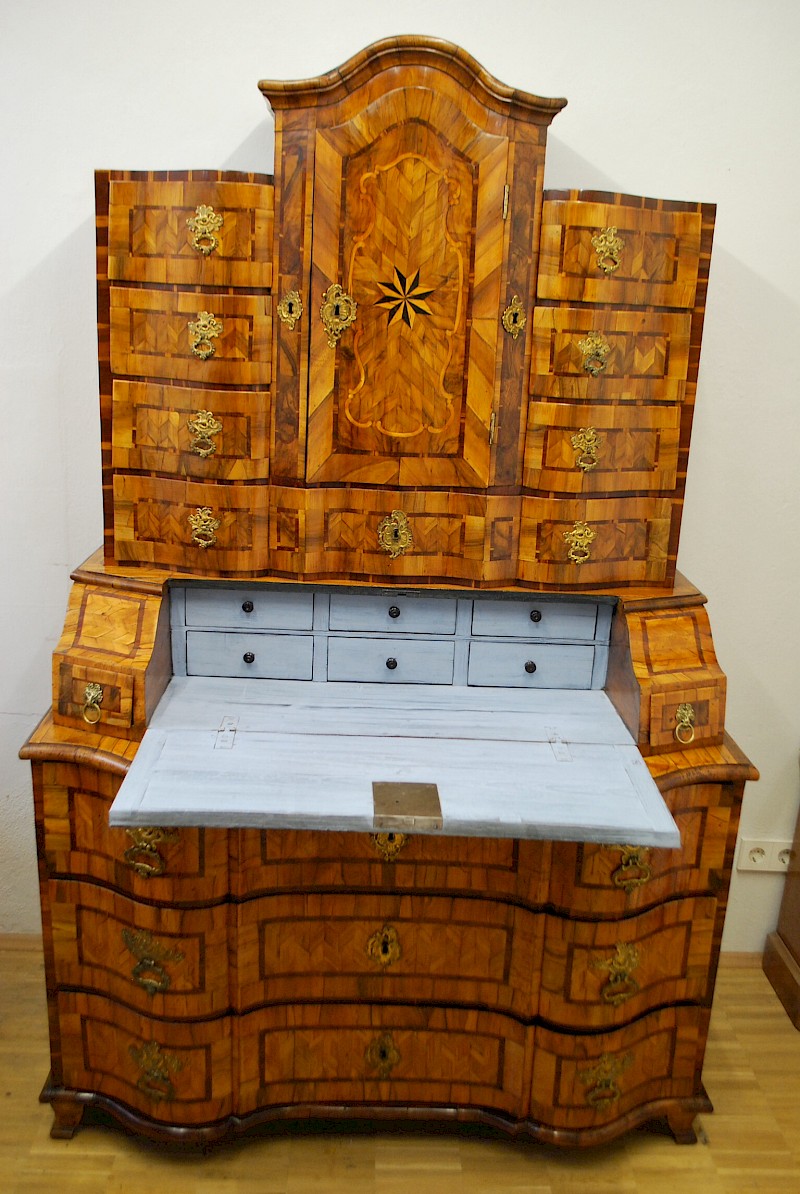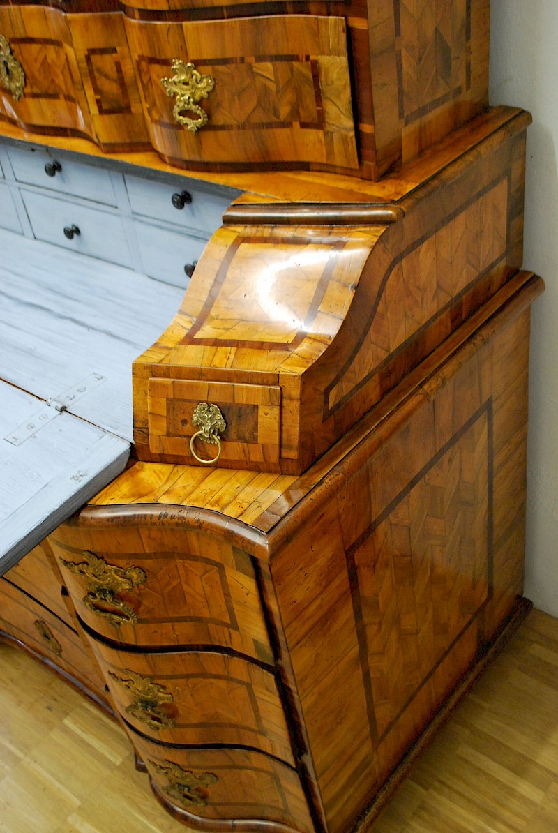 Das Möbel präsentiert sich nach der erfolgten Restaurierung wieder in wunderbaren und differenzierten Holzfarben.